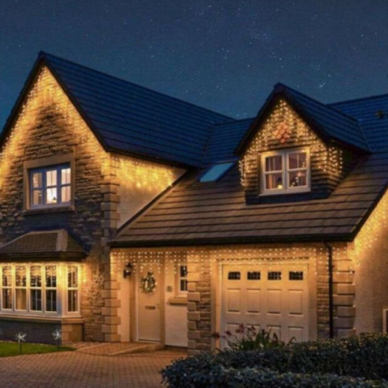 A fényfüzér toldható kivitelű, így több szettet is könnyedén össze tudsz kapcsolni, ha hosszabb homlokzatot, erkélyt vagy nagyobb felületet szeretnél egyben feldíszíteni.