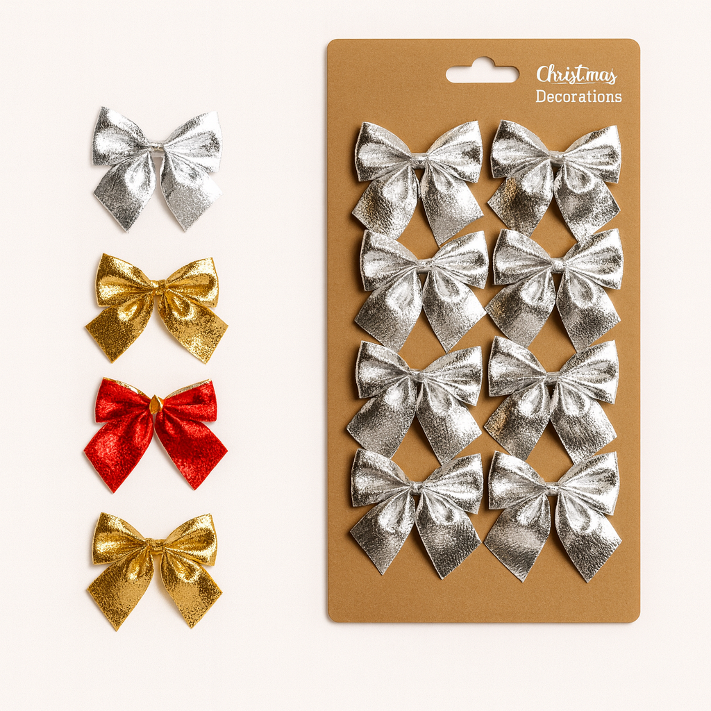 A csomag 12 darab, kb. 5×5,5 cm-es masnit tartalmaz, egyforma színben és méretben, így egységes, mégis látványos ünnepi dekorációt készíthetsz pillanatok alatt.