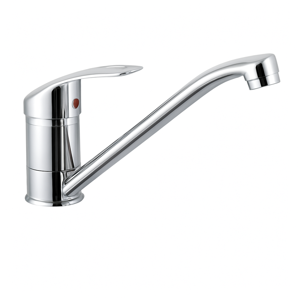 A H-05 egykaros álló konyhai csaptelep modern, letisztult csap, amit közvetlenül a mosogatóra vagy a munkalapra tudsz felszerelni. A hosszú, előre ívelt kifolyó nagy munkateret ad a mosogatóban, így a nagyobb lábasok, tepsik, vödrök is kényelmesen beférnek alá.