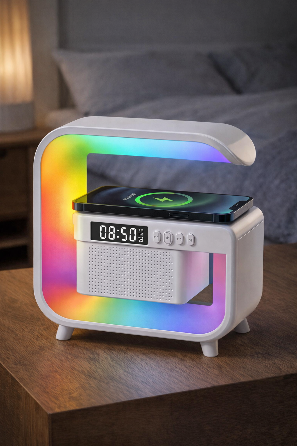 A napfelkelte-szimulációs fény segít kellemesen felébredni, az RGB hangulatvilágítás és a nyugtató hangok pedig hozzájárulnak a pihentető alváshoz. A tetején elhelyezett vezeték nélküli töltővel kényelmesen feltöltheted a telefonod éjszaka. Modern, letisztult kialakítása bármely hálószobában jól mutat.