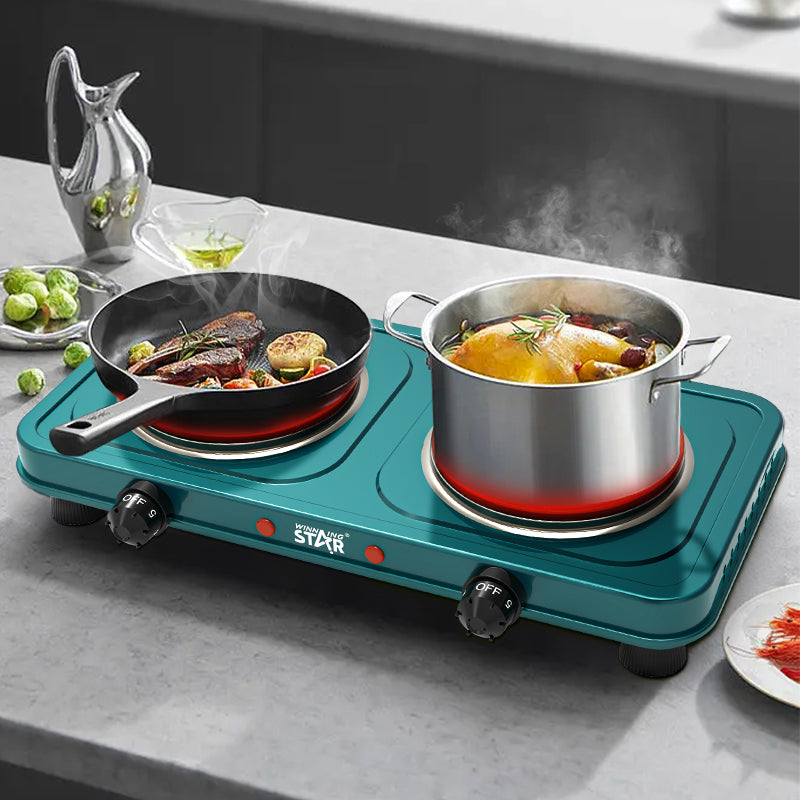 A Winning Star Dupla Elektromos Főzőlap ideális választás mindazoknak, akik kis helyen szeretnének praktikus és hatékony főzési lehetőséget. Legyen szó kollégiumi szobáról, nyaralóról, albérletről vagy akár kempingezésről, ez a főzőlap gyorsan felmelegszik és stabil teljesítményt nyújt.
